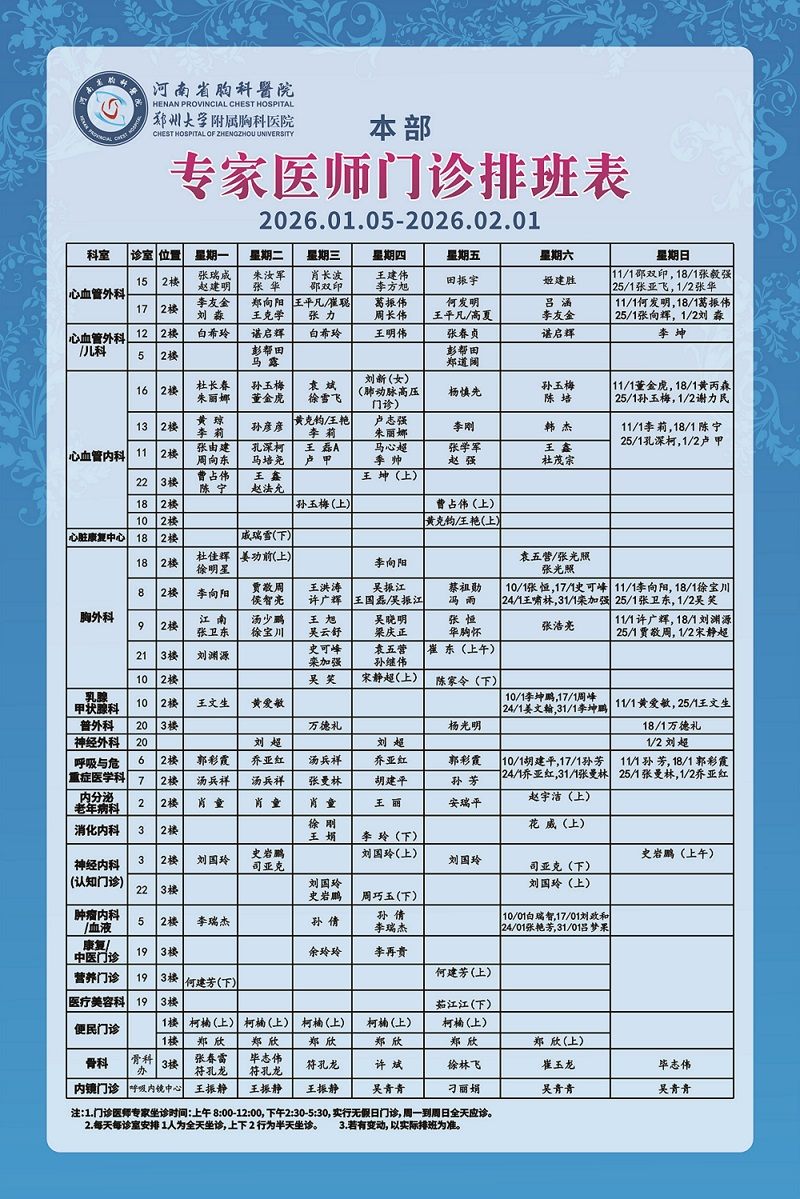 出诊时间表