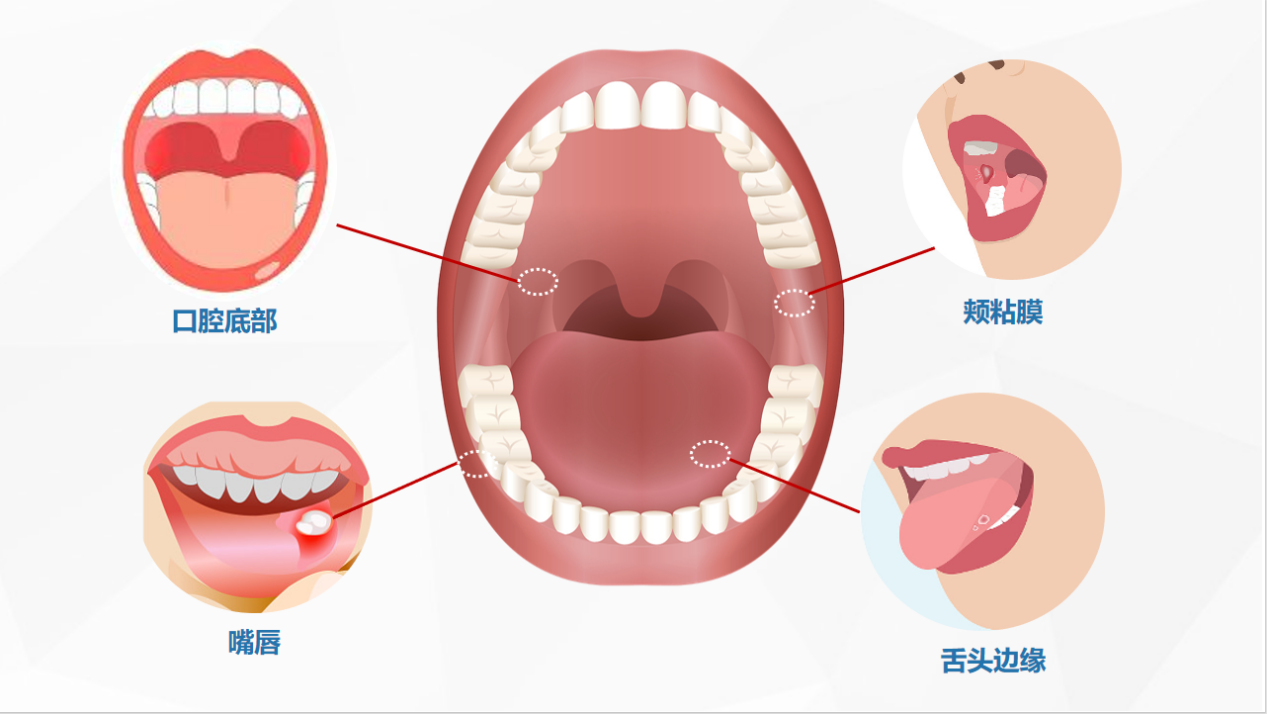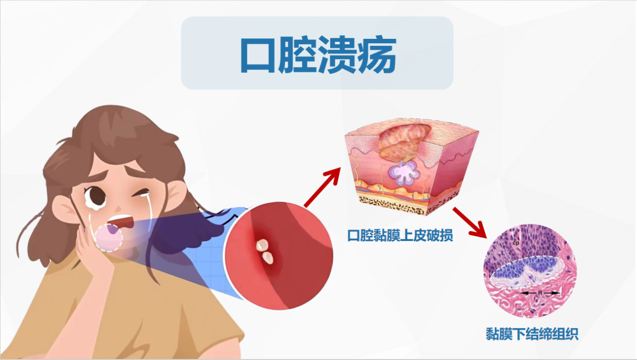 口腔溃疡俗称“口疮”,是指口腔黏膜表层组织局限性坏死脱落而形成组织缺损或凹陷,上皮完整性破坏的一种口腔黏膜疾病,发病率为5%-66%,多见于嘴唇、颊粘膜、舌头边缘和口腔底部。