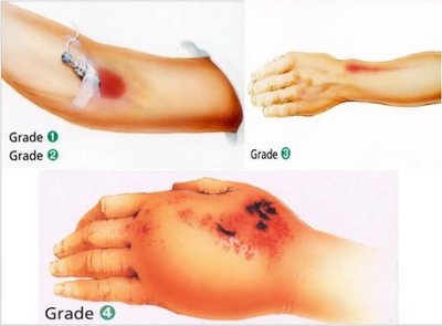 “厉害药”(化疗药、高浓度营养液、血管活性药物等):这种碰不得!冷敷热敷都可能加重损伤,一秒都别耽误,立刻找医护-他们会用专门的“封闭治疗”或解毒药处理。比如多巴胺(收缩血管)外渗,会用酚妥拉明(扩张血管)封闭处理。