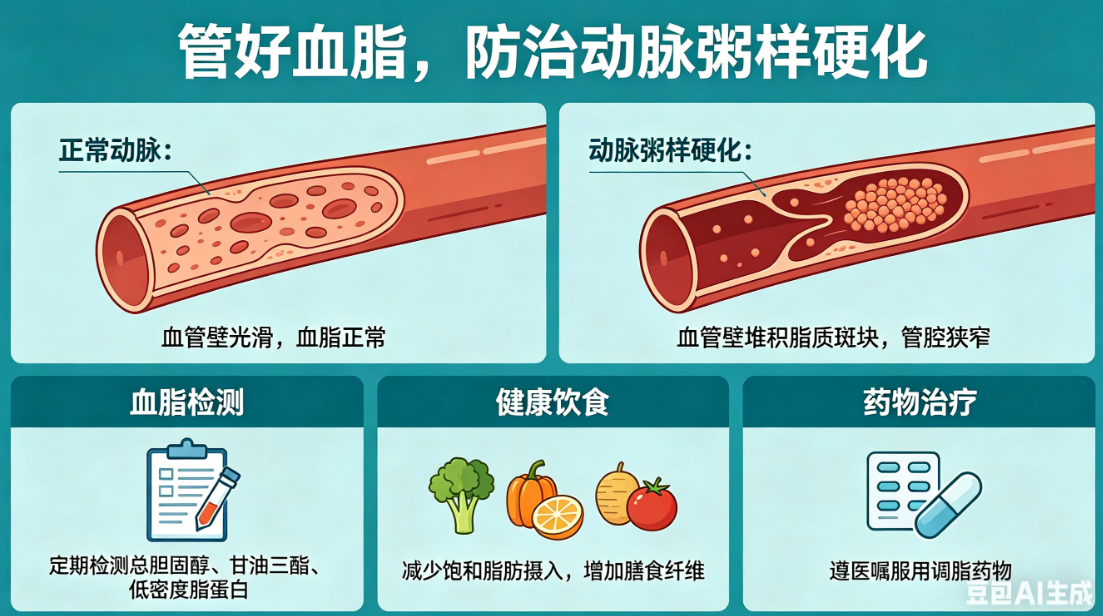 3. 管好血脂:别让血管慢慢“生锈”,高脂血症简单说,就是血液里的胆固醇、甘油三酯等“垃圾”变多了,这些脂质会在主动脉壁上异常沉积,慢慢形成斑块,让血管像生锈的水管一样变硬变脆,这也是主动脉夹层的重要诱因。建议定期检查血脂,早发现异常早干预;如果血脂数值偏高,必要时在医生指导下吃他汀类药物,稳住血管里的斑块,减少脂质对血管的持续损伤。 4. 防治动脉粥样硬化:拆除血管里的“隐形隐患”动脉粥样硬化,就是血管里的脂质斑块越积越多,让主动脉变得僵硬、没弹性,严重时斑块还会形成主动脉穿透性溃疡,破裂出血的风险极高。其实防治它的方法并不复杂,前面说的控血压、控血脂、戒烟,就是延缓动脉粥样硬化的三大关键,把这三点做好,就能有效拆除这个血管里的“隐形隐患”。 5. 警惕遗传性疾病:高危人群别忘定期筛查有些朋友天生就面临更高的主动脉夹层风险,比如患有马凡综合征、Loeys–Dietz综合征、Ehlers–Danlos综合征等遗传性结缔组织病的人群,这类疾病会让主动脉中膜的先天结构出问题,夹层或动脉瘤的发病概率会显著升高。如果确诊了这类疾病,一定要定期做心脏超声,监测主动脉根部直径的变化;有相关家族史的朋友,也要尽早做筛查,遵医嘱及时干预,别让先天的风险变成实际的危险。 6. 养好生活习惯:给血管添一层“保护罩”很多看似不起眼的小习惯,其实都在影响血管健康。保持情绪平稳,别因为暴怒、激动让血压突然飙升;平时多吃膳食纤维、多喝水,预防便秘,避免用力排便时腹压骤增,间接给血管加压;还要避免突然的剧烈运动、重体力劳动和猛然发力,减少血管壁的突发压力。另外还要牢记一个关键预警信号:如果突发胸背部撕裂样的剧痛,这很可能是主动脉夹层的信号,一定要立刻就医,分秒必争! 主动脉夹层虽然凶险,但它从来都不是“防不胜防”。对我们普通人来说,做自己健康的第一责任人,从控血压、戒烟、控血脂这些小事做起,坚持健康的生活习惯,定期做体检和针对性筛查,就能牢牢守护住主动脉的健康,躲开这颗可怕的“血管炸弹”,让身体的“生命主干道”一直畅通,拥抱安稳的生活。
