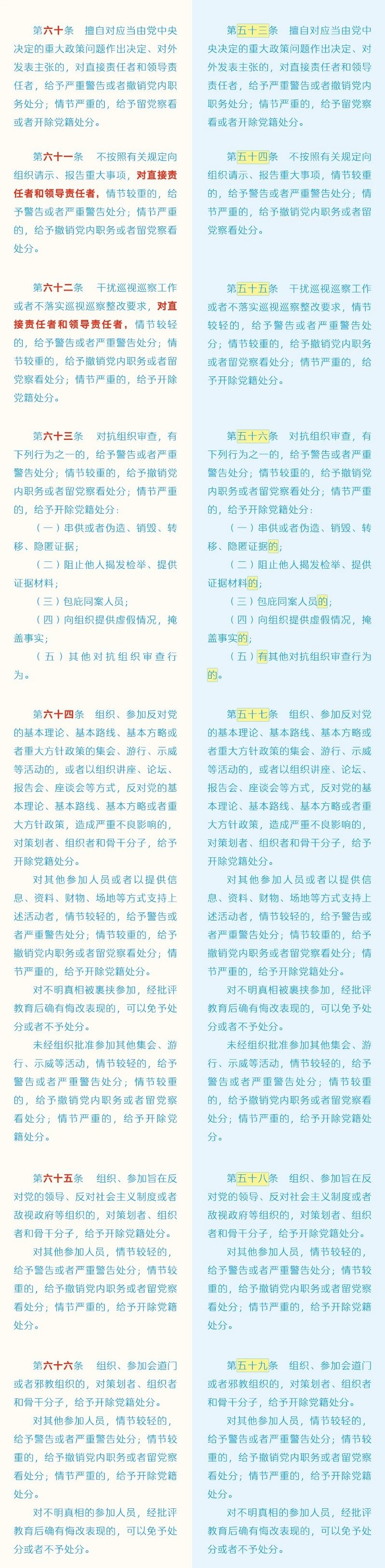 《中国共产党纪律处分条例》修订条文对照表