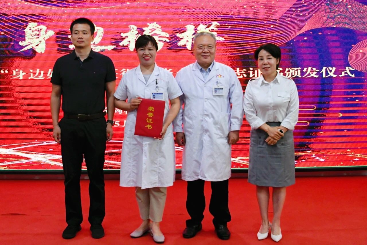 会上,王玉荣宣读了省直文明办文件《关于公布2024年度“身边好人”的通知》。党委书记袁义强为张金枝颁发“身边好人”荣誉证书,并与党委副书记、院长杨继峰,党委委员、副院长王玉荣一起同张金枝合影留念。